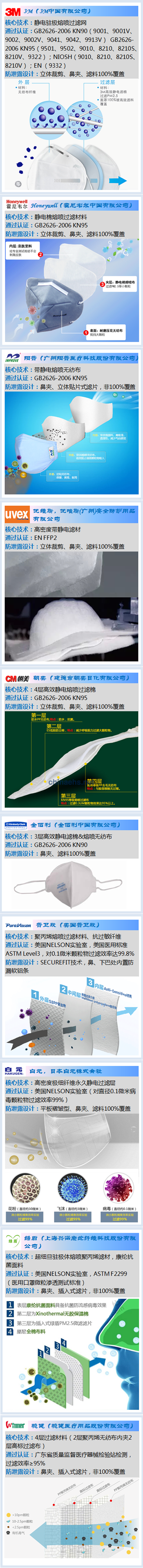 掌握了選擇PM2.5防護(hù)口罩的選擇方向及標(biāo)準(zhǔn)后,小編就要為大家解密市場上的防護(hù)口罩技術(shù)了,下面這張圖,告訴你“十大防護(hù)口罩”(選自“十大品牌網(wǎng)”)核心技術(shù)區(qū)別,教你選擇最適合的防護(hù)口罩: