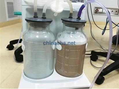 由于病情拖延較久,楊先生肺部基礎(chǔ)情況較差,在肺部灌洗3000余毫升生理鹽水后,楊先生一度出現(xiàn)生命危險,緊急轉(zhuǎn)入ICU病房,在醫(yī)護(hù)團(tuán)隊密切觀察及治療下,昨日成功拔管,咳嗽基本停止。昨日,楊先生指著從自己肺里灌洗出的3000多毫升灰褐色“泥漿”表示:“這個顏色跟我切割的石頭是一樣的。”