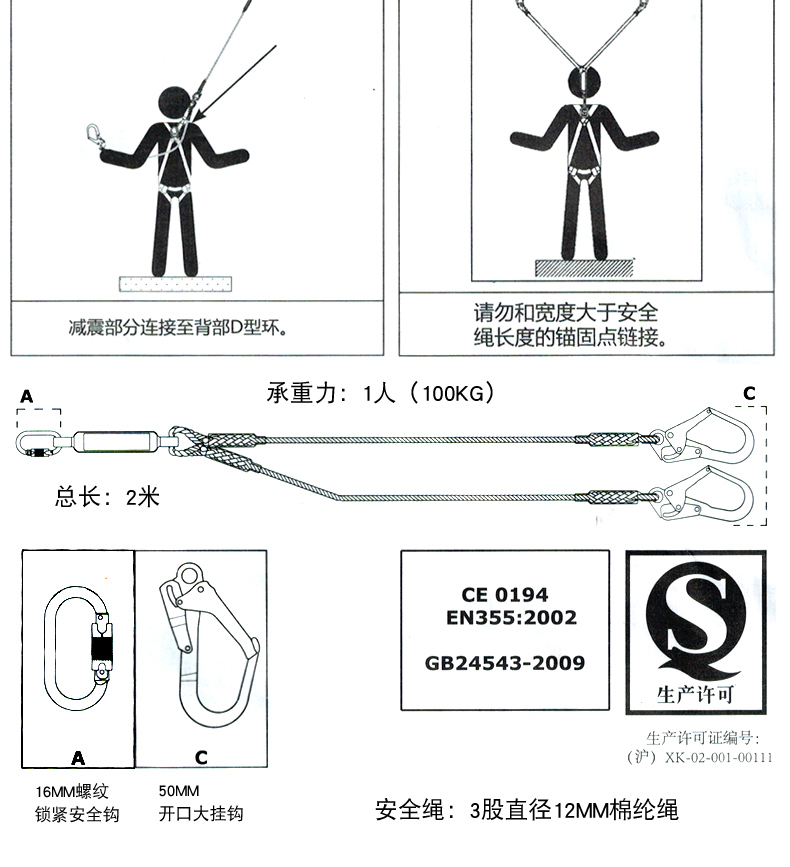 3M(凱比特) 1390019 保泰特First雙鉤減震連接繩